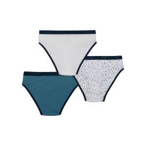 Pack of 3 girls’ White Blue Les Pockets stretch cotton knickers with a star pattern