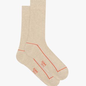 Beige ribbed cotton men’s socks with coloured piping Dim Mode