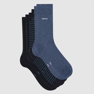 Pack of 3 pairs of men’s black striped socks Dim Coton Style
