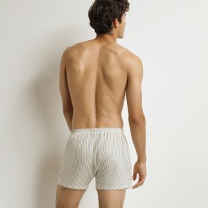 Pack of 2 Beige Striped Green Stretch Cotton Men’s Boxer Briefs