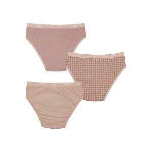Les Pockets Pack of girl’s purple stretch cotton knickers with gingham pattern