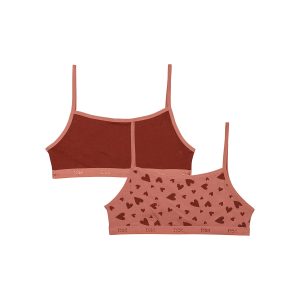 Pack of 2 Les Pockets Sand stretch cotton bralettes with heart prints