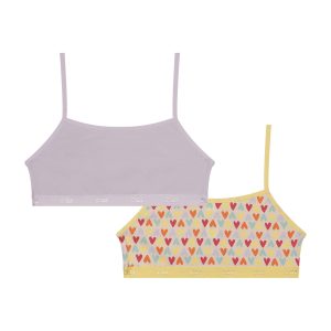 Pack of 2 Lila stretch cotton girl’s bras with heart pattern Les Pockets