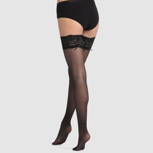 Dim Up Sexy 25D semi-opaque hold-up stockings with black lace garter