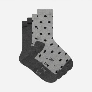Pack of 2 pairs of women’s socks grey with large polka dots Dim Coton Style