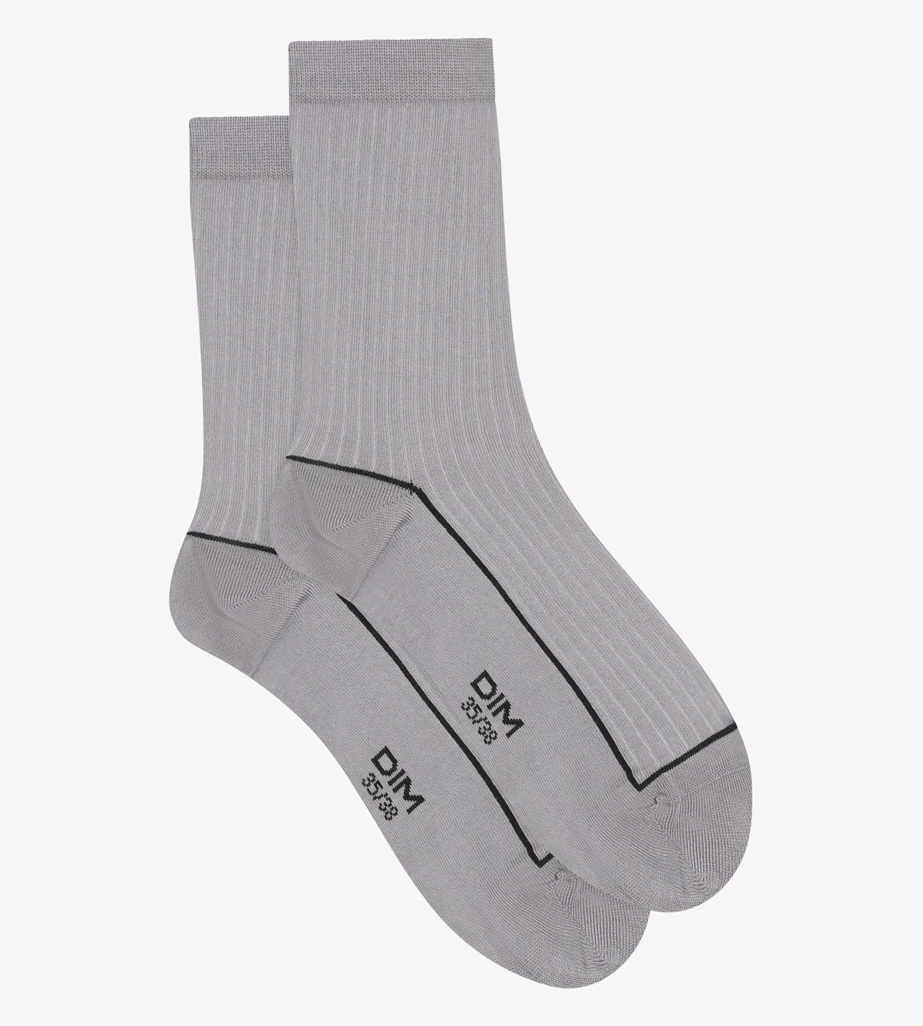 With their natural Beige coloring and mid-high cut, these Dim Mode ribbed cotton women’s socks complete your outfits with sobriety. You’ll love their ribbed texture that offers a perfect fit with an elegant finish. The contrasting Orange piping adds a bright, modern touch to this pair of everyday women’s socks.