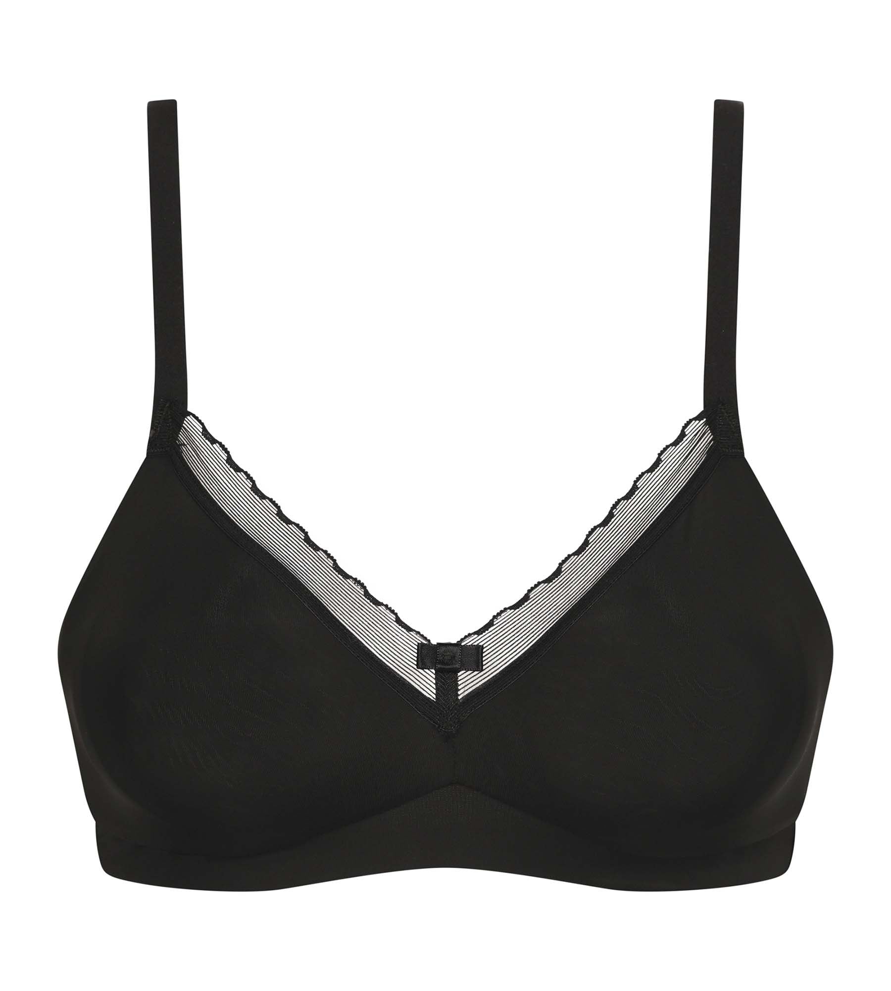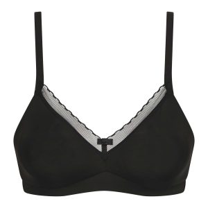 Rely on the understated elegance of the Dim Daily Confort non-wired bra in microfiber and black tulle.