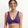 - Flexible, underwire-free cups for natural support