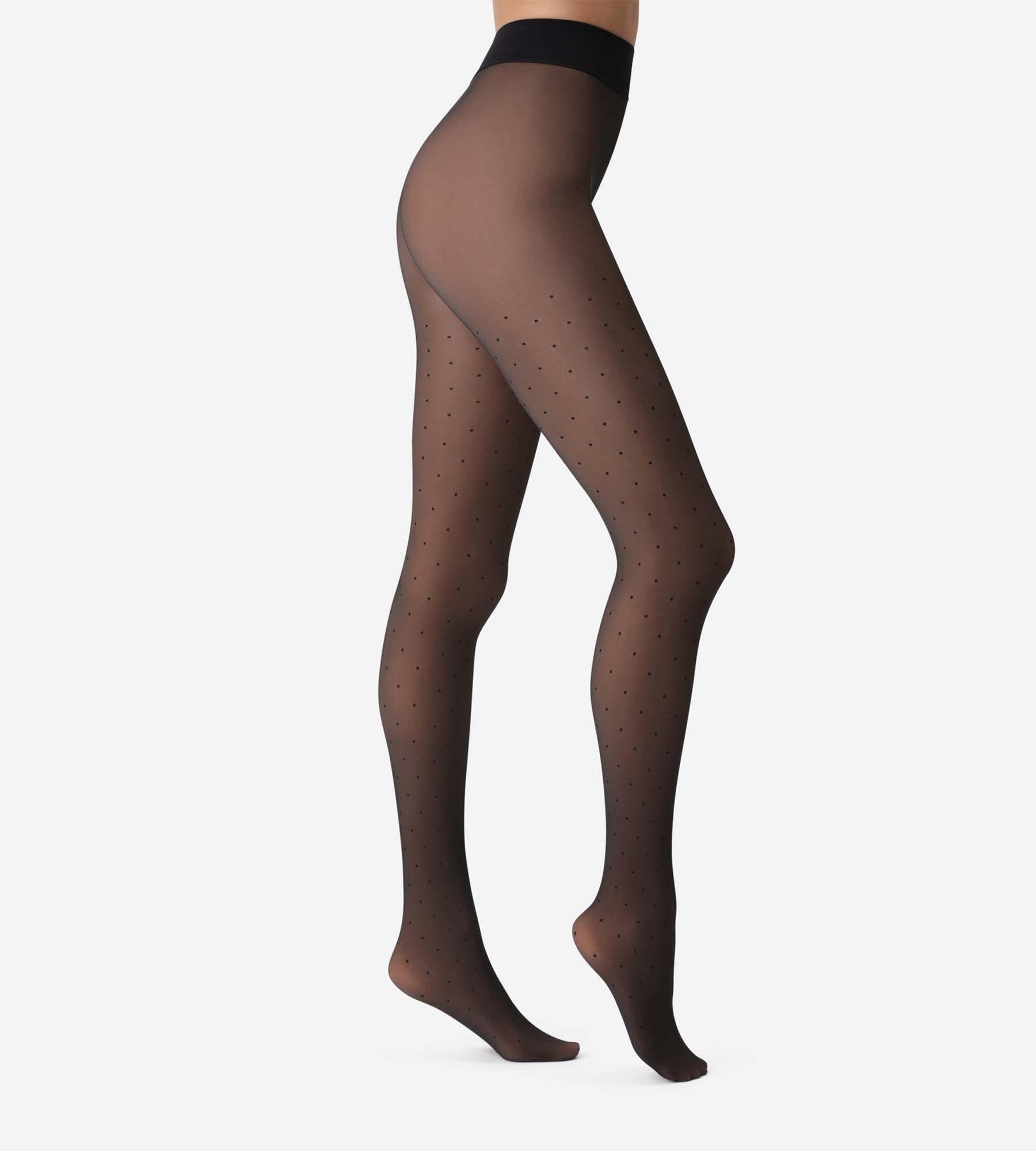 Combine warmth and fantasy with the black DIM Thermo tights, featuring a sheer effect voile with on-trend polka dots.