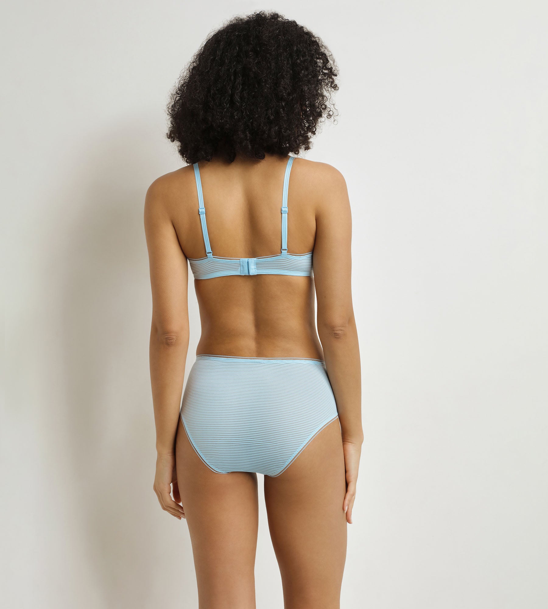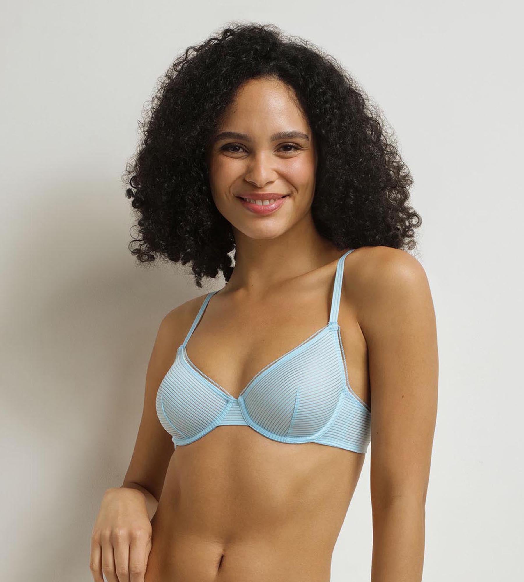 Your look is élégant with the Bleu Chemise Dim x Ines de La Fressange corbeille bra with sheer épurées lines.