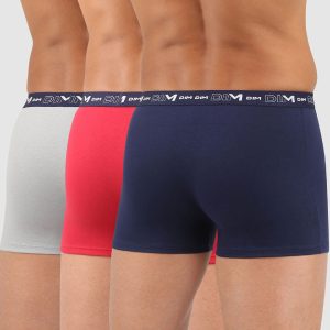 This Cotton Stretch pack of 3 men’s trunks in plain, colourful stretch cotton is essential for every stylish man’s wardrobe!We love:the softness and finesse of the stretch cottonthe classic, timeless cut of these men’s trunksthe lined front pocket for enhanced support every daythe stylish elastic waistband, for a discreetly modern lookthe variation of 3 trendy coloursFor a timeless selection of underwear with unchanging comfort, opt for the legendary men’s stretch cotton trunks from Dim! You’ll love the flexibility and breathability of the fabric, and the effective daily support provided by the reinforced front pocket. Available in denim blue, topaz red, and steel grey, with a contrast waistband with the graphic Dim logo, this pack of 3 men’s trunks has a subtle fashionable touch which adapts to your every desire!Complete your collection with our Cotton Stretch men’s trunks in their many colour variations! REFCOD6596T3-9LH
