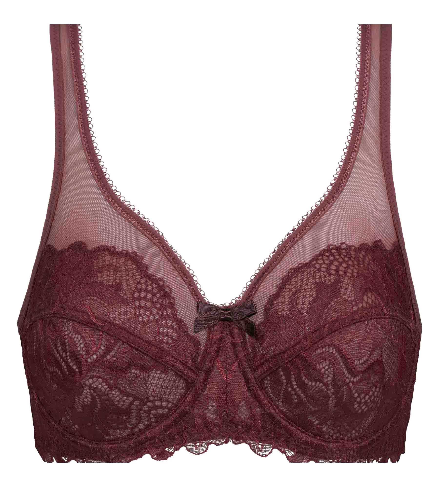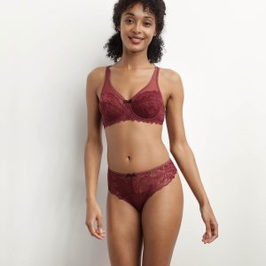 Enhance your chest with comfort, support and sensuality thanks to our Generous Essentiel full cup bra, in captivating Dark Ruby lace!