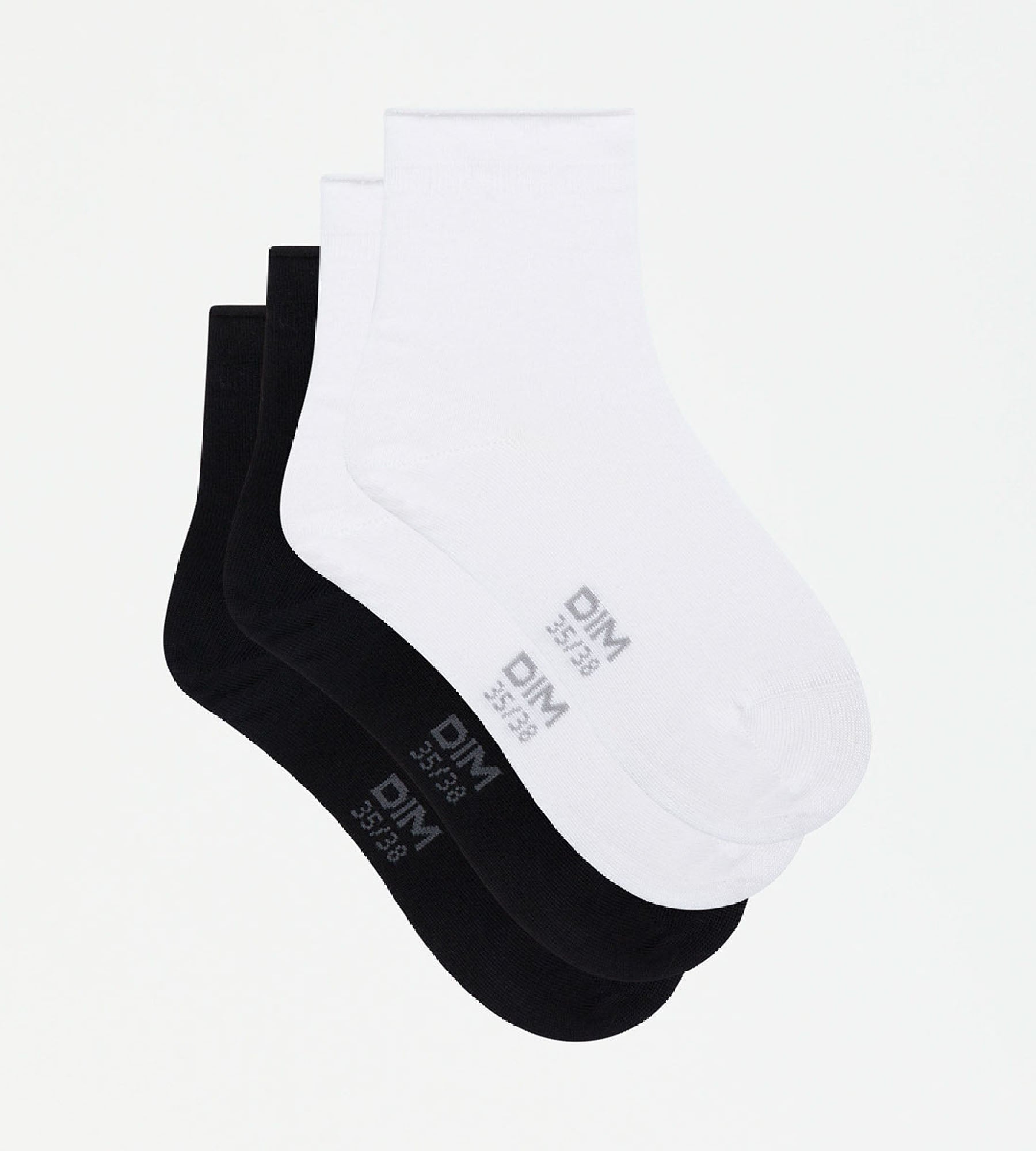 For a flawless everyday look, opt for this duo of women’s low socks in timeless Black and White! Slip into these socks made with modal fabric (78%) and experience a cocooning, silky sensation all day long. Careful, you’re gonna get addicted! Constructed with a very flexible rolled support band, flat seams and a reinforced mesh at the heels and toes, these warm women’s socks accompany your every step with incomparable ease.