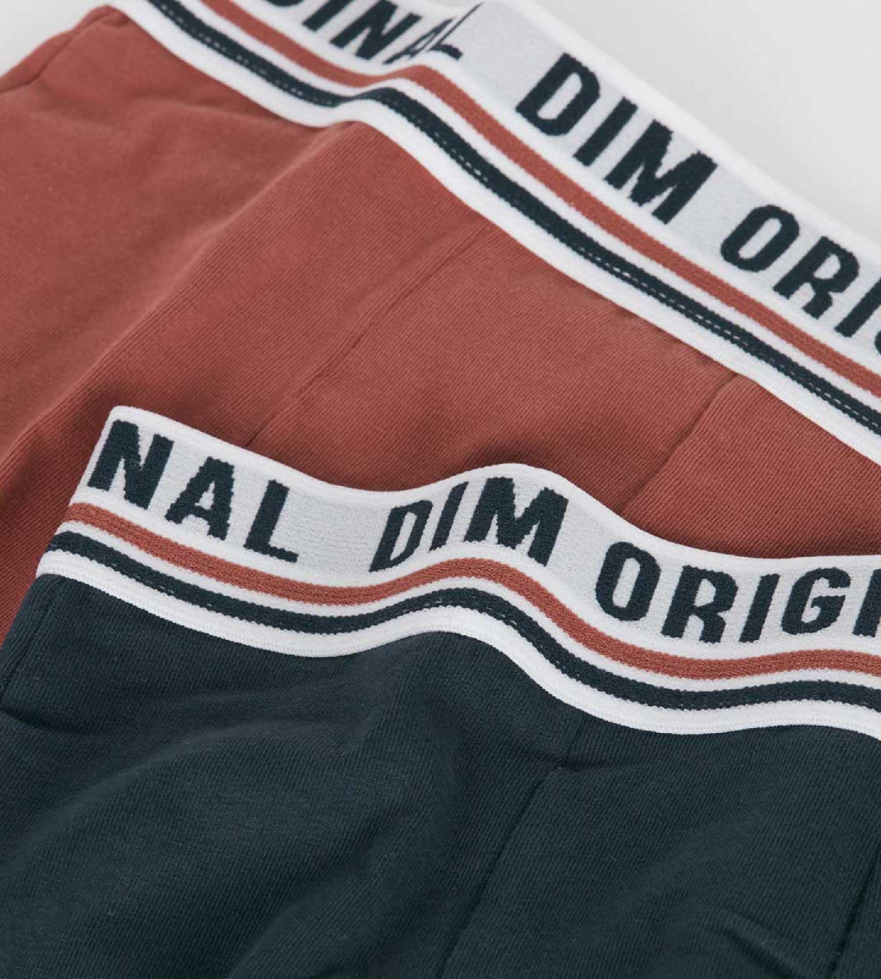 Derived from the Dim Originals men’s boxer, the set of 2 DIM Boxers Originals in stretch cotton is inspired by 80s lingerie to give them a very old school look! Composed of a boy’s Earth Red boxer and a child’s Dark Blue boxer, With an athletic waistband signed DIM, this duo of Underwear for Boysmarks out their waist with character!