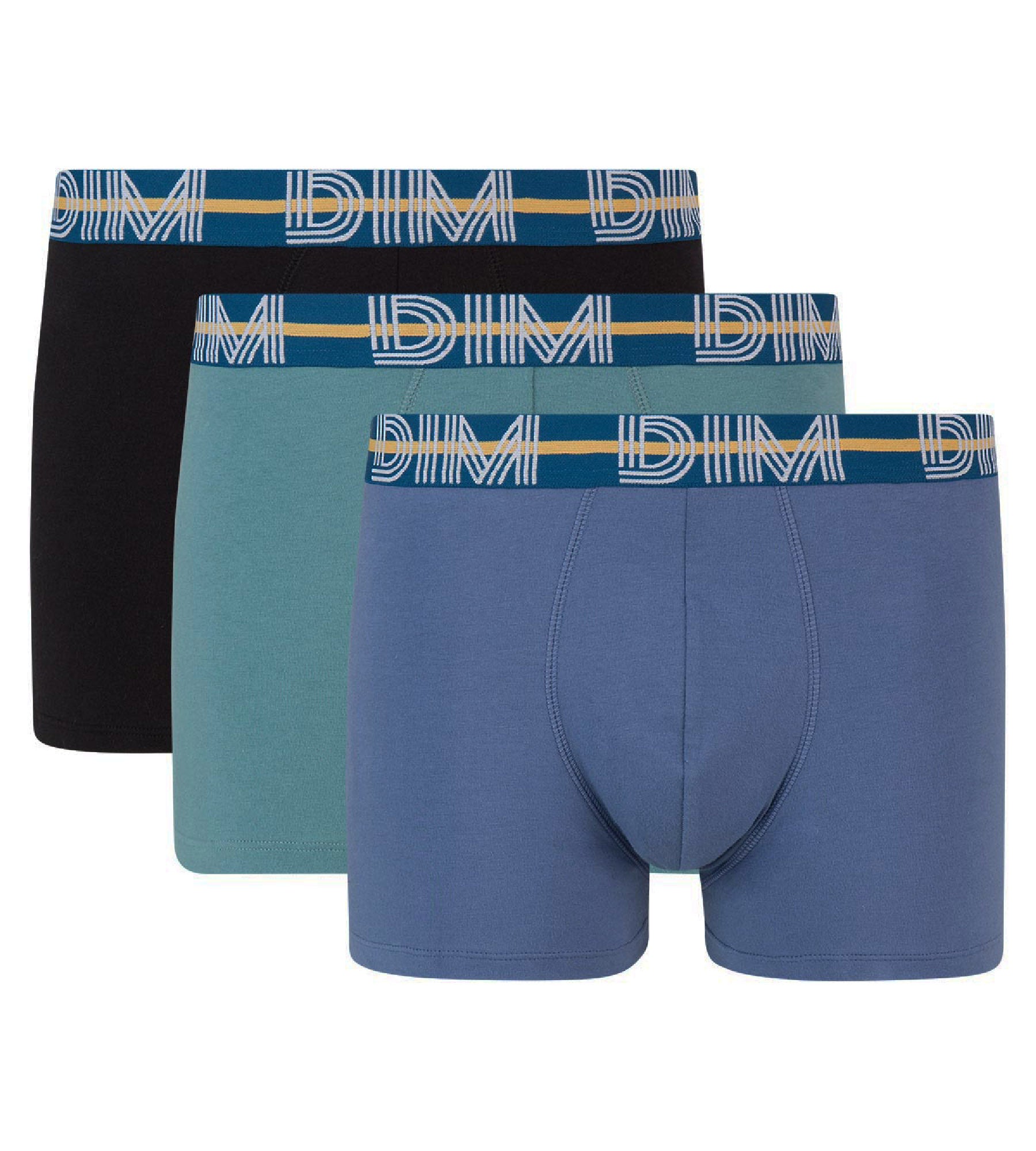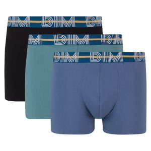 Dim Powerful 3 pack stretch cotton trunks in blue and black with contrast waistband