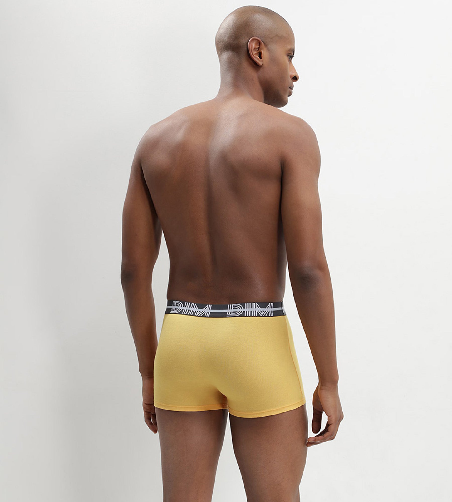 Opt for a bold look with this Dim Powerful pack of 3 stretch cotton trunks in intense colours with a sharp design!We love:the stylish look of these men’s trunksthe explosive combinations of mouse grey, mimosa yellow, and steel bluethe incomparable softness of the stretch cottonthe wide, graphic waistband that supports you in stylethe reinforced front lining and seams for optimal supportDo you want to be comfortable and trendy at the same time? Then the Dim Powerful men’s trunks in brightly coloured, ultra-soft stretch cotton are perfect for you!Composed of 3 pieces of cocooning mouse grey, cheeky mimosa yellow, and distinguished steel blue, this pack of men’s trunks will add some pep to your step. The finishing touch? An embossed Dim logo waistband of course! Let it protrude slightly above your jeans for a discreet touch of style.Add even more colour to your life with the Dim Powerful men’s trunks in viridian green and berry red, also available in sets of 3! REFCOD01QUT3-9LM
