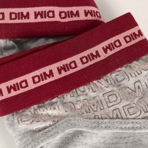 - The contrasting burgundy elasticated waistband adorned with the DIM logo for a modern, dynamic touch.