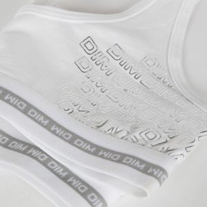 Their posture is athletic and chic in tThe white Dim Sport teenage underwear with a structured T-back and Dim logo in silver print that subtly glamorises their look. We love the elasticated waistband under the bust, which emphasises The bust with energy!