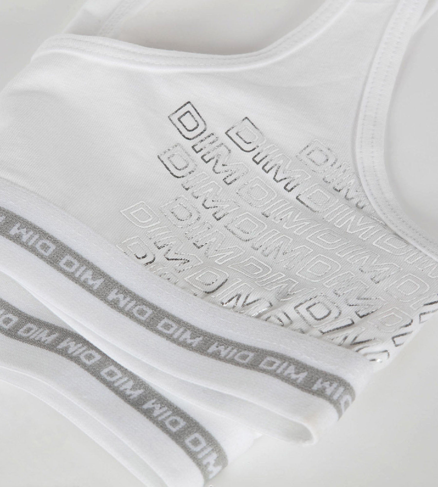 The Dim Sport White stretch cotton girl’s bra with a sparkling gymnastic look holds your teenager in place with efficiency and femininity!