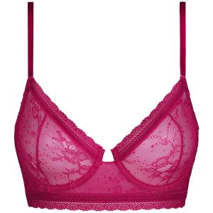 Boldly and femininely support your breasts with the Dim Romance interlocking bra in fuchsia floral lace!