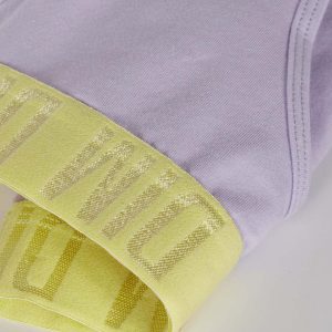 Girl’s shorty in Lila stretch cotton and Anis belt Dim Sport