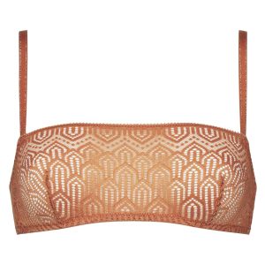 Easily put on this Mod de Dim wireless bralette in Noisette lace with trendy Art Deco patterns!