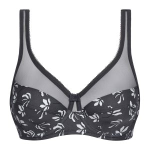 Support your breasts with femininity thanks to the Dim Generous interlocking bra in Granite Grey microfiber with floral motif.