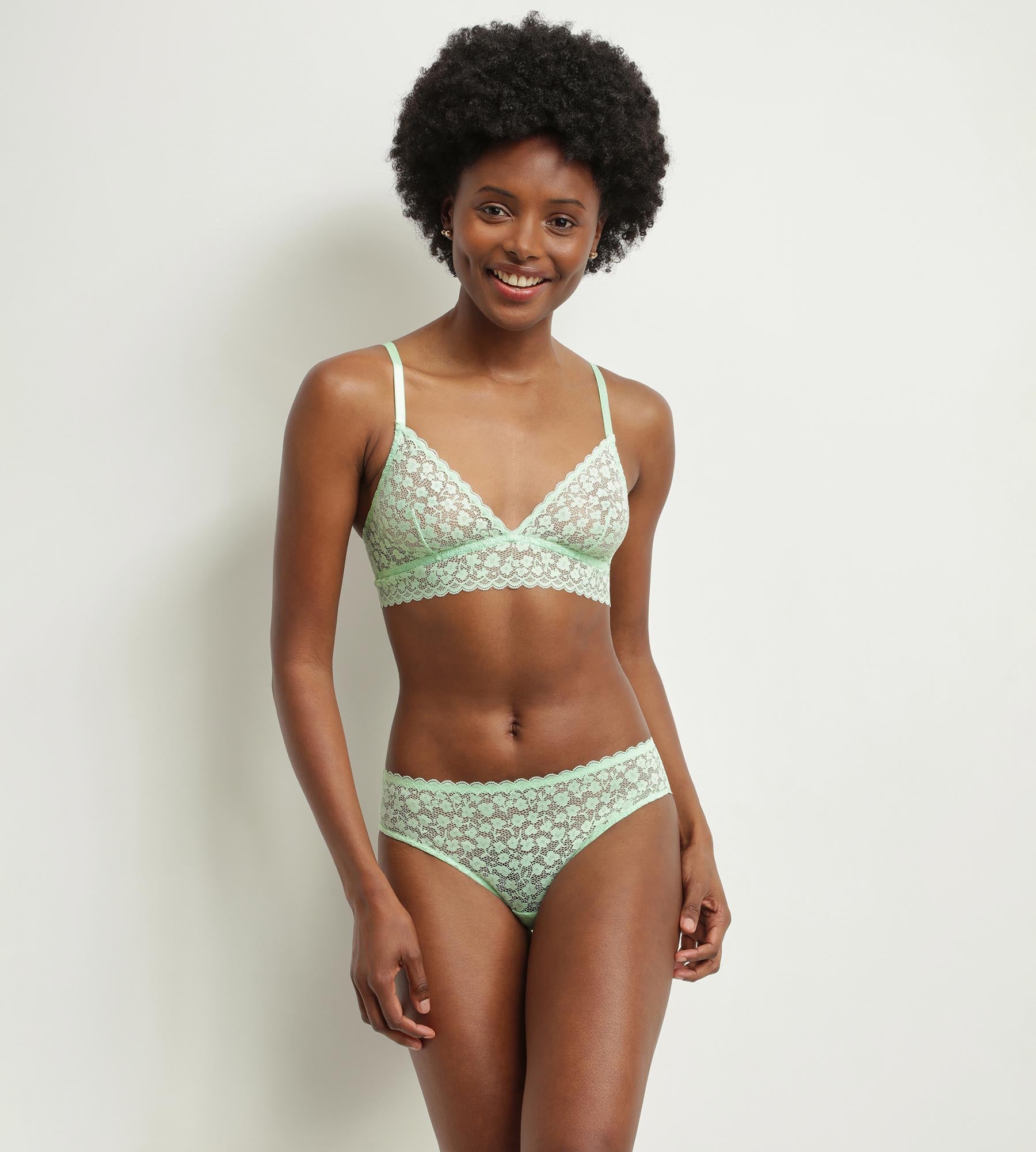 Fall for the casual, feminine style of the Daisy Lace underwired triangle bra in Water Green floral lace!