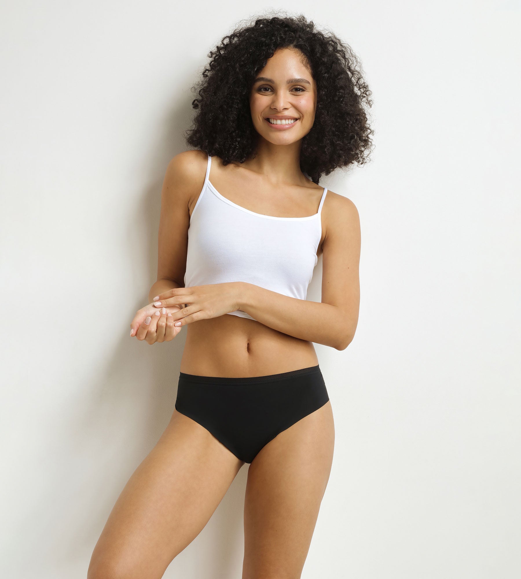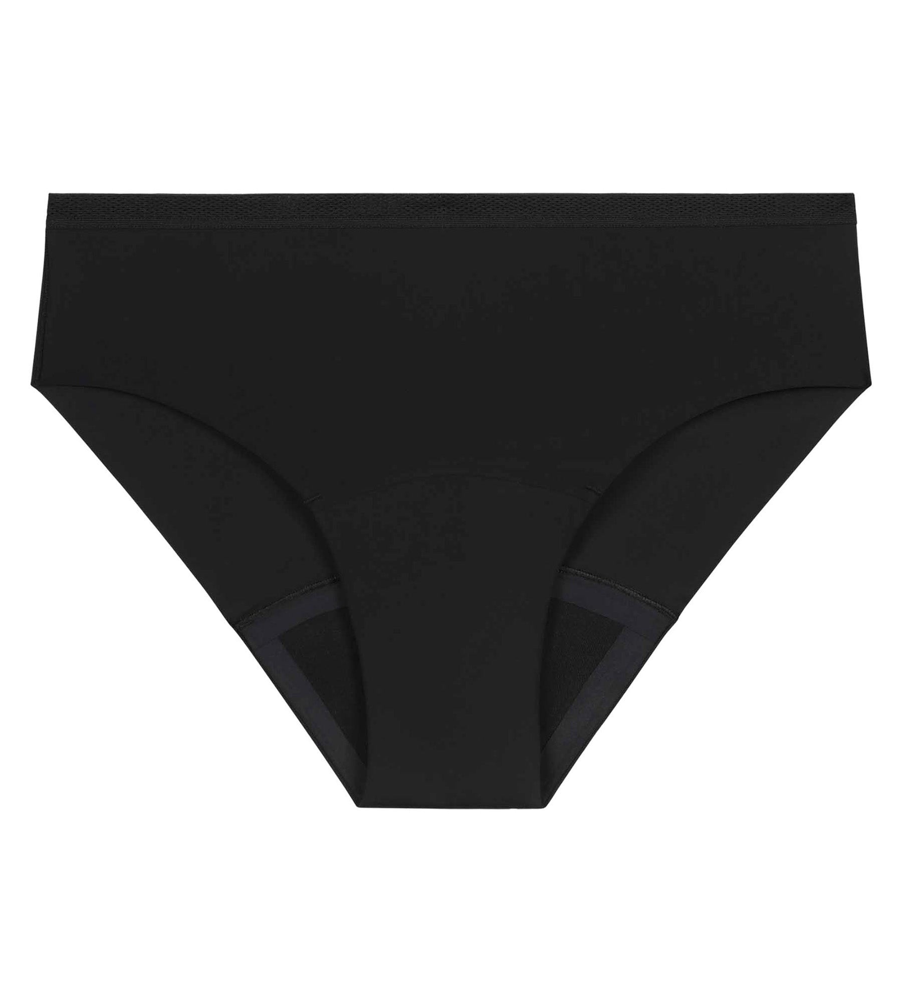 Discreet, ultra-effective protection with the Dim Protect black microfiber invisible menstrual panty.