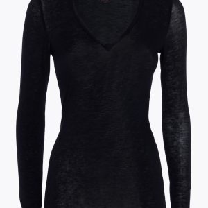Discover the long-sleeved V-neck jumper in modal and cashmere, perfect for completing all your looks. This plain jumper is made from a soft, ultra-light yarn that gently wraps around the body, giving you an inimitable, fashionable style. Try it under elegant jackets or blazers as an undergarment, or wear it as an outerwear piece for unrivalled style!