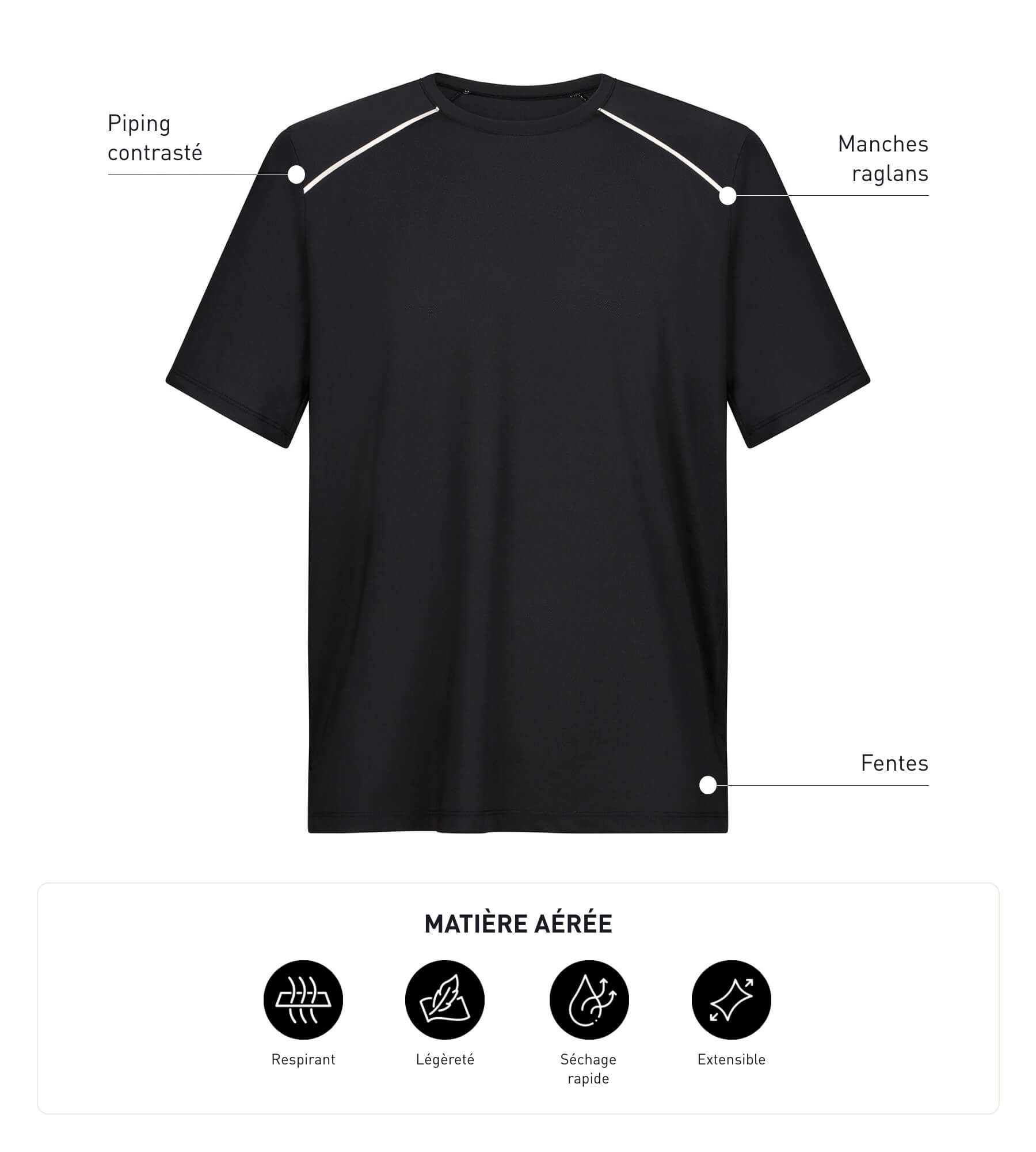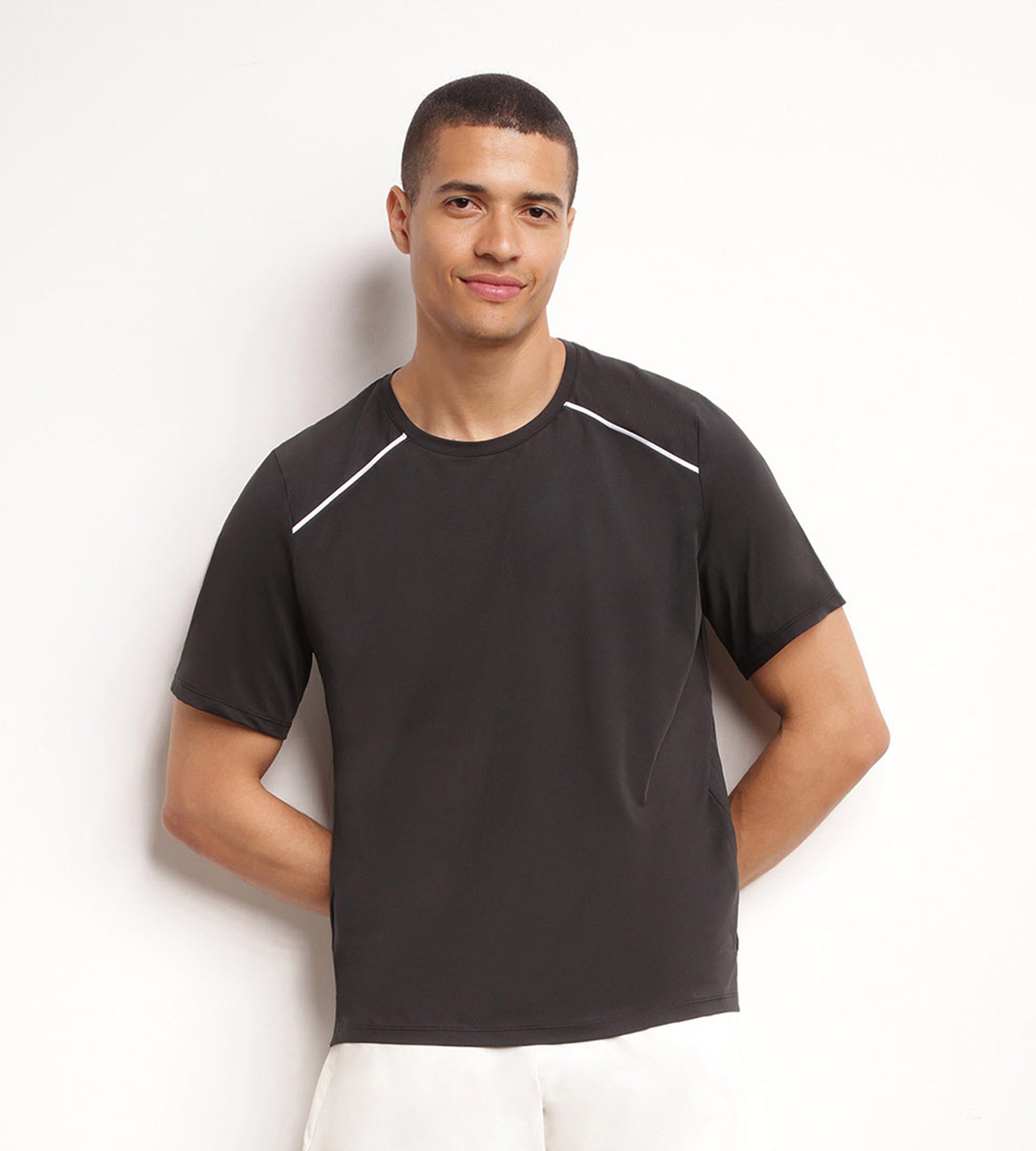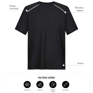 Made from a fluid, lightweight mesh fabric, this sportswear Dim Move is designed to take you through all your training sessions with ease. Its straight cut and side slits ensure total freedom, while the contrasting piping on the shoulders adds a modern touch. Perfect for a session at the gym or an outdoor running session, this black T-shirt is an essential for your sports wardrobe.