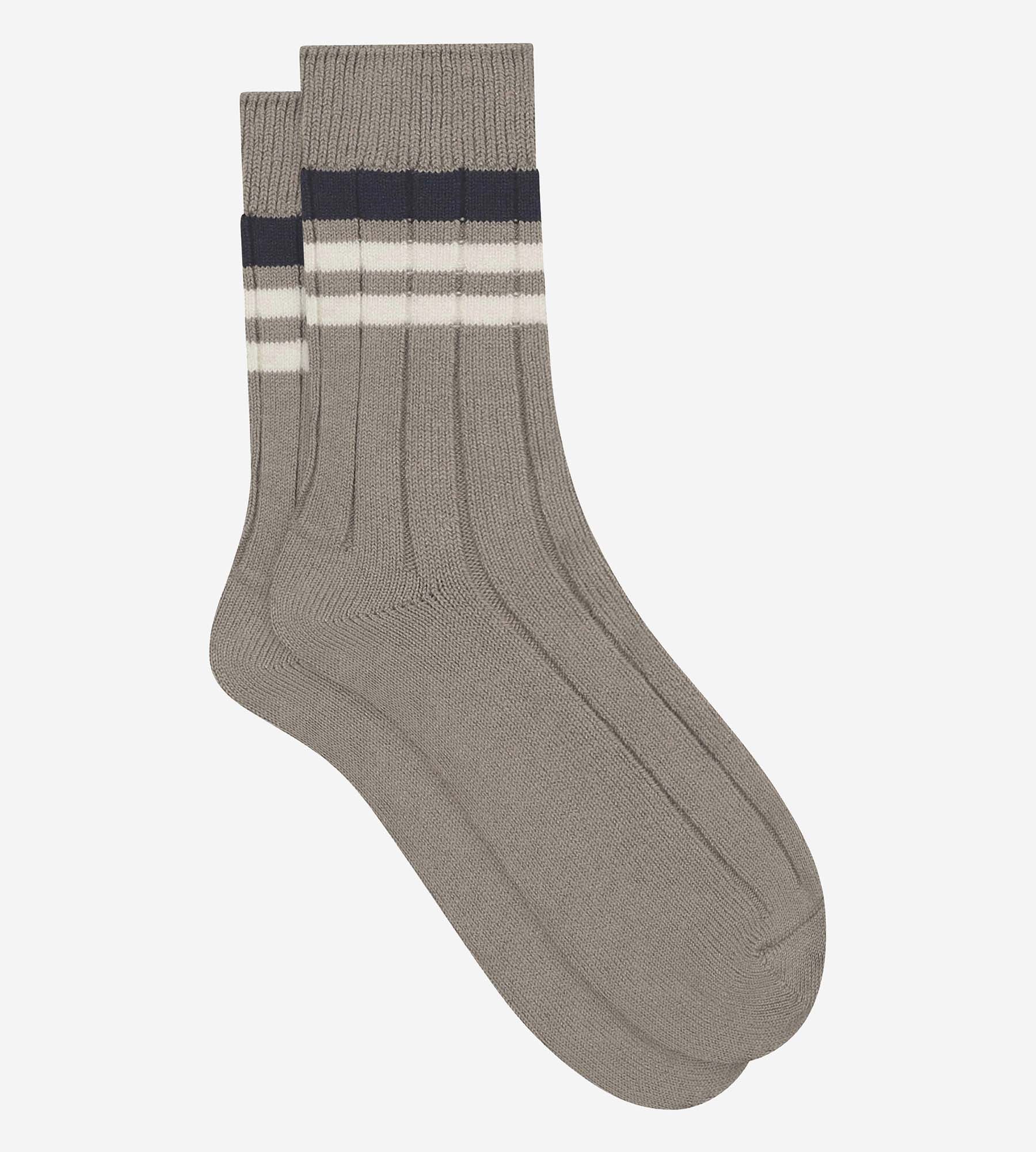 Elegant and athletic, the Dim Bamboo men’s socks in Sand Grey viscose with navy stripes are a dynamic finishing touch to any outfit!