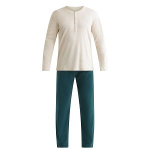 Show off casual-chic style from morning to night with the Dim Warm men’s pyjama set in ivory and green jersey.