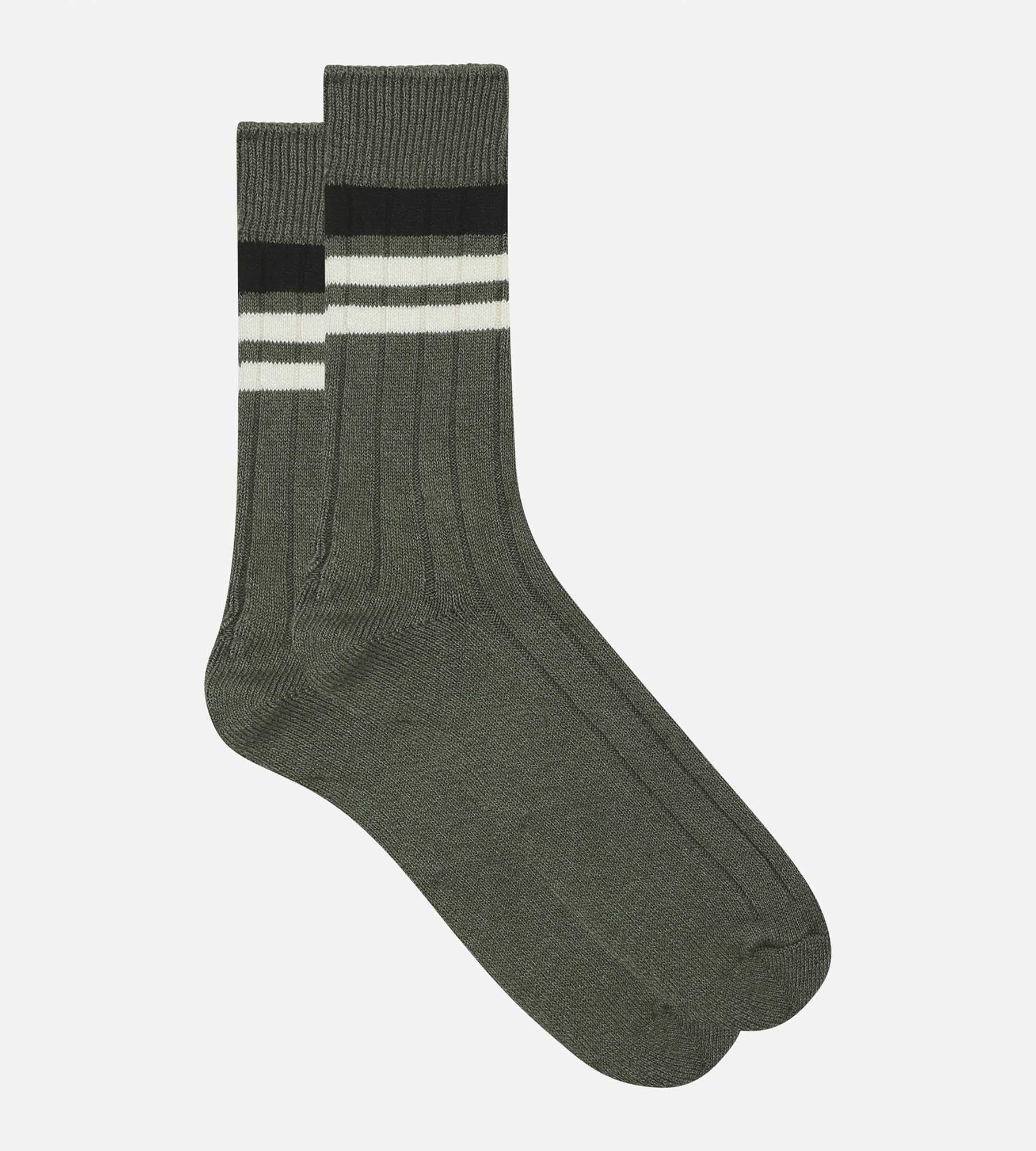Combine style and comfort, every day with the DIM Bamboo men’s socks. Knitted with a ribbed olive green knit and adorned with black and cream stripes, the DIM socks add a retro-modern touch and structure to your look. Thanks to their natural bamboo fibre, these socks are breathable and keep your feet dry. An ideal accessory to complete your outfits with elegance and comfort.