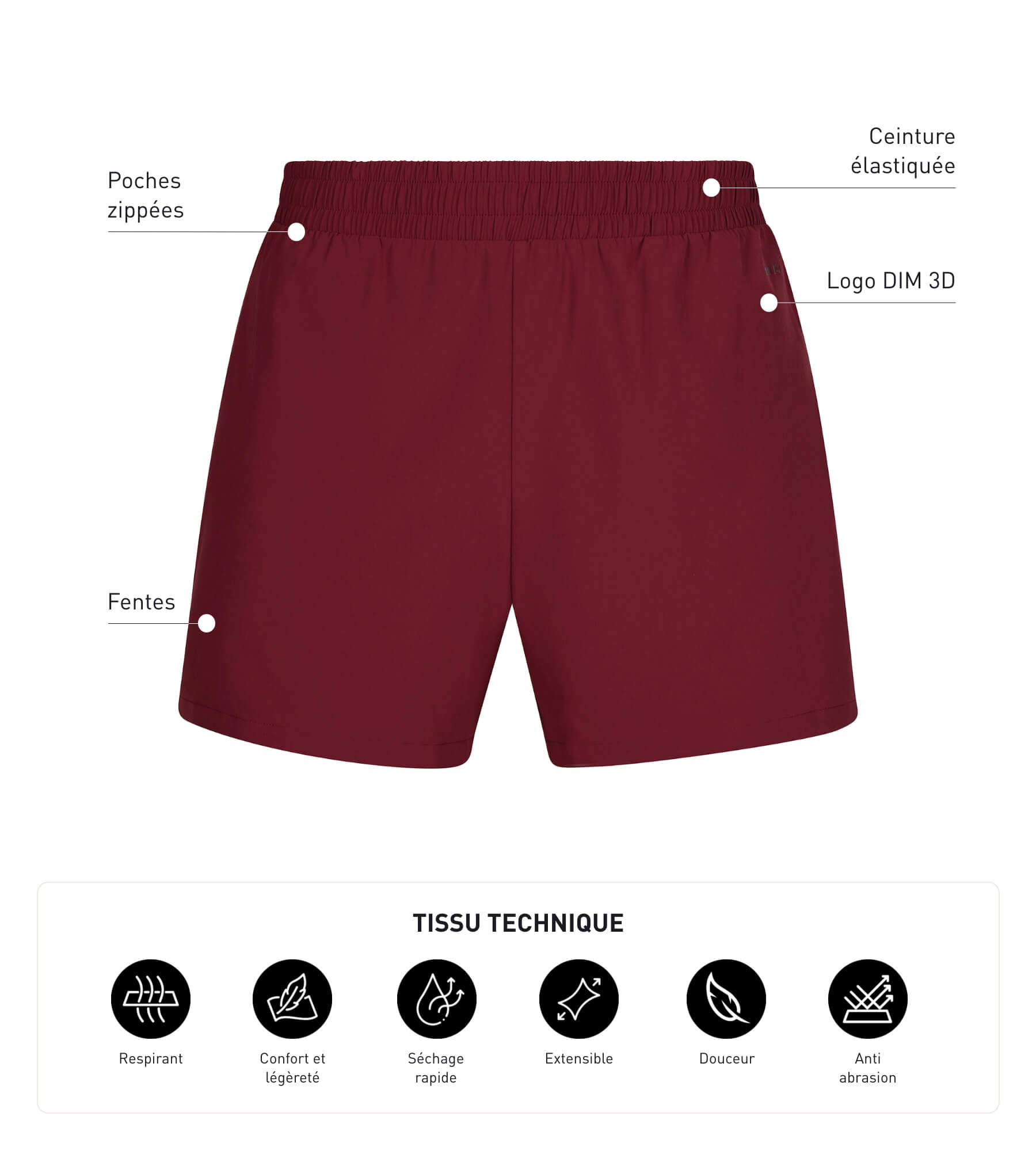 Add a splash of colour to your training gear with the Dim Move Bordeaux men’s sports shorts!