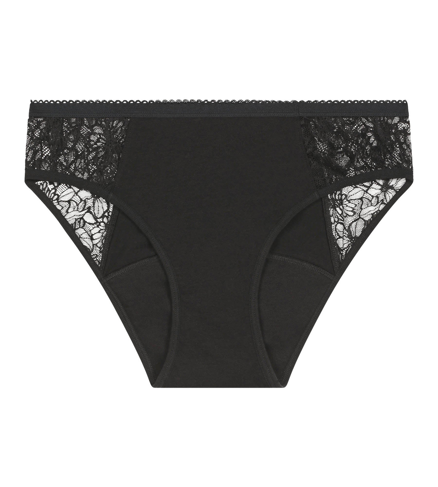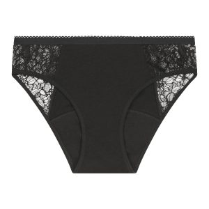 Menstrual briefs organic cotton lace Black heavy flow Dim Protect