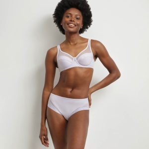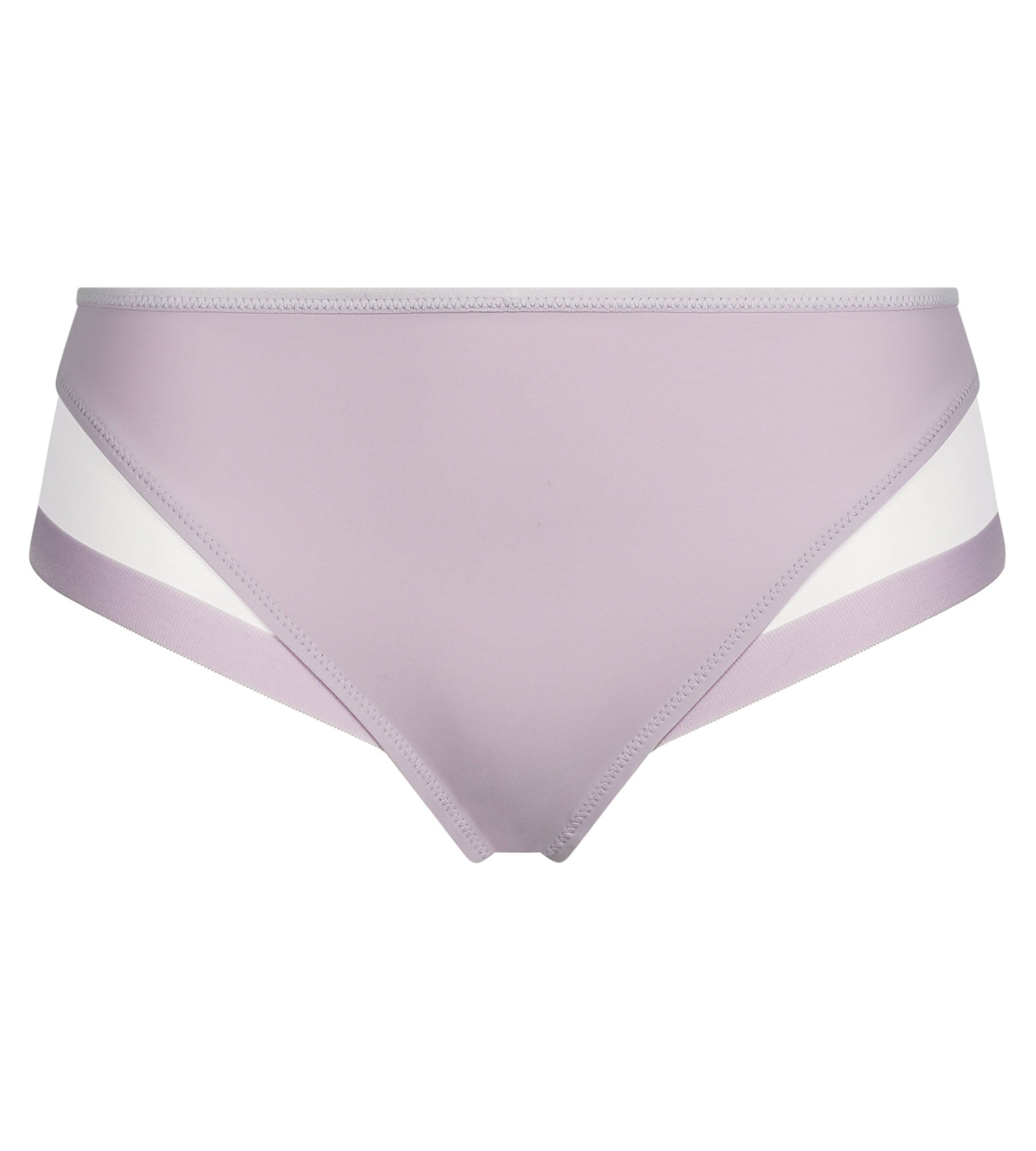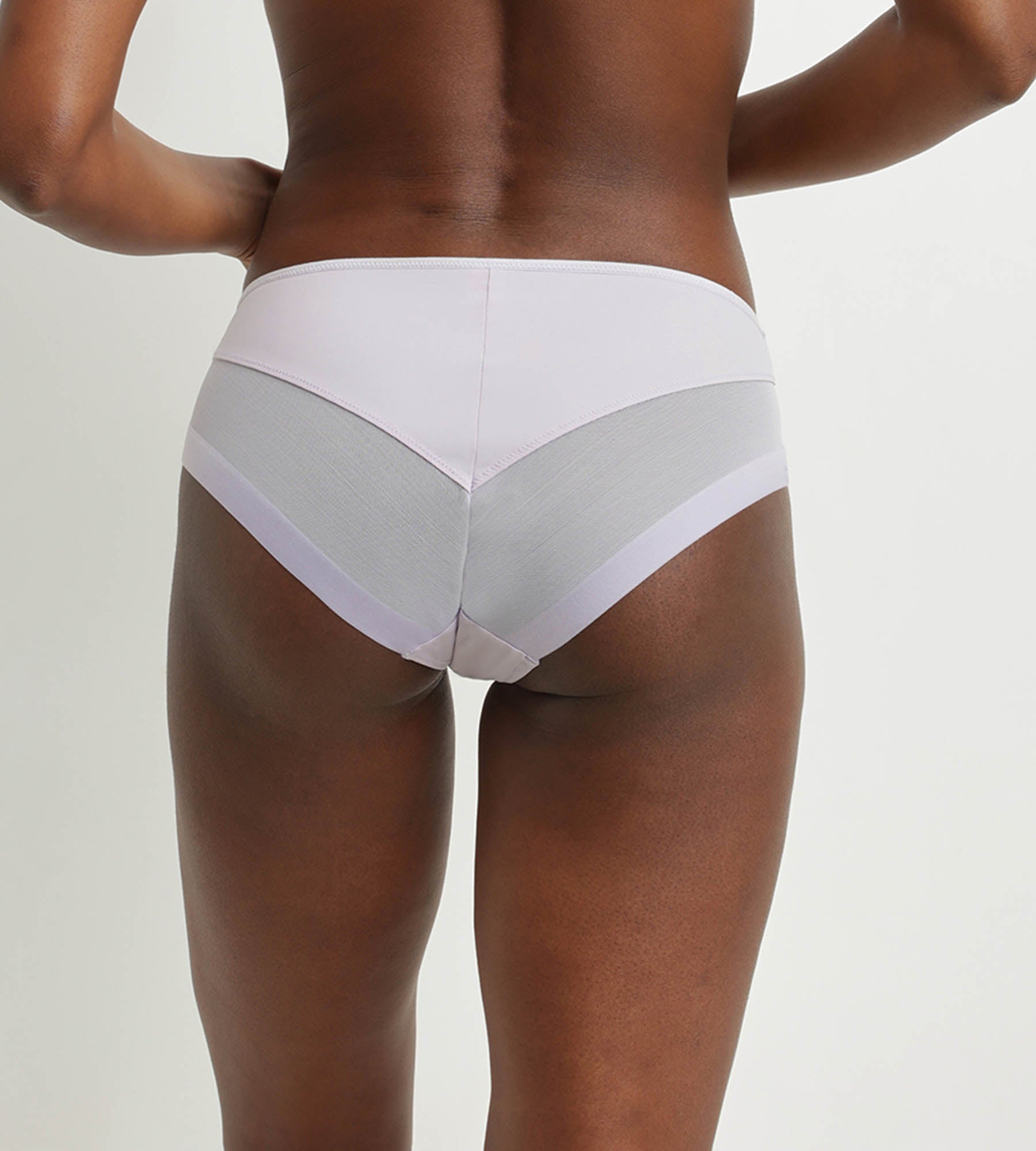 Fabriquée avec un mélange de microfibre douce et de tulle vaporeux, avec des coutures seconde peau, la women’s panties is your ally for comfort and discretion! Constructed with a V-neckline at the back and tulle inserts on the hips and buttocks, the women’s briefs lengthens the silhouette and highlights it with sensuality. We love its Violet Grey colour, with its soft pastel shades.