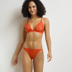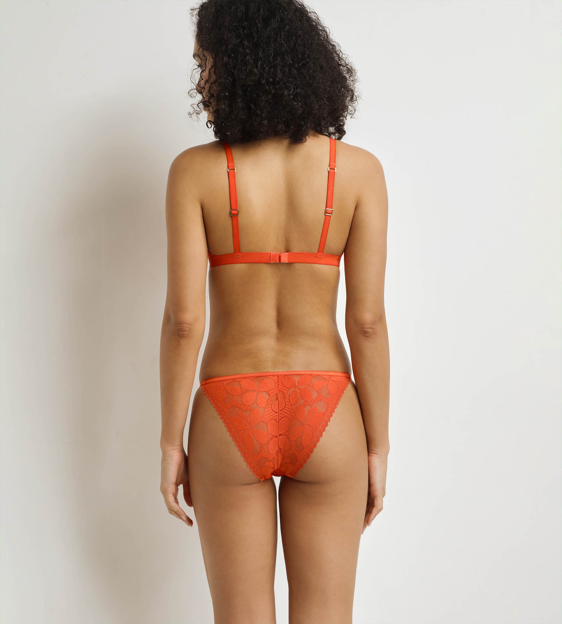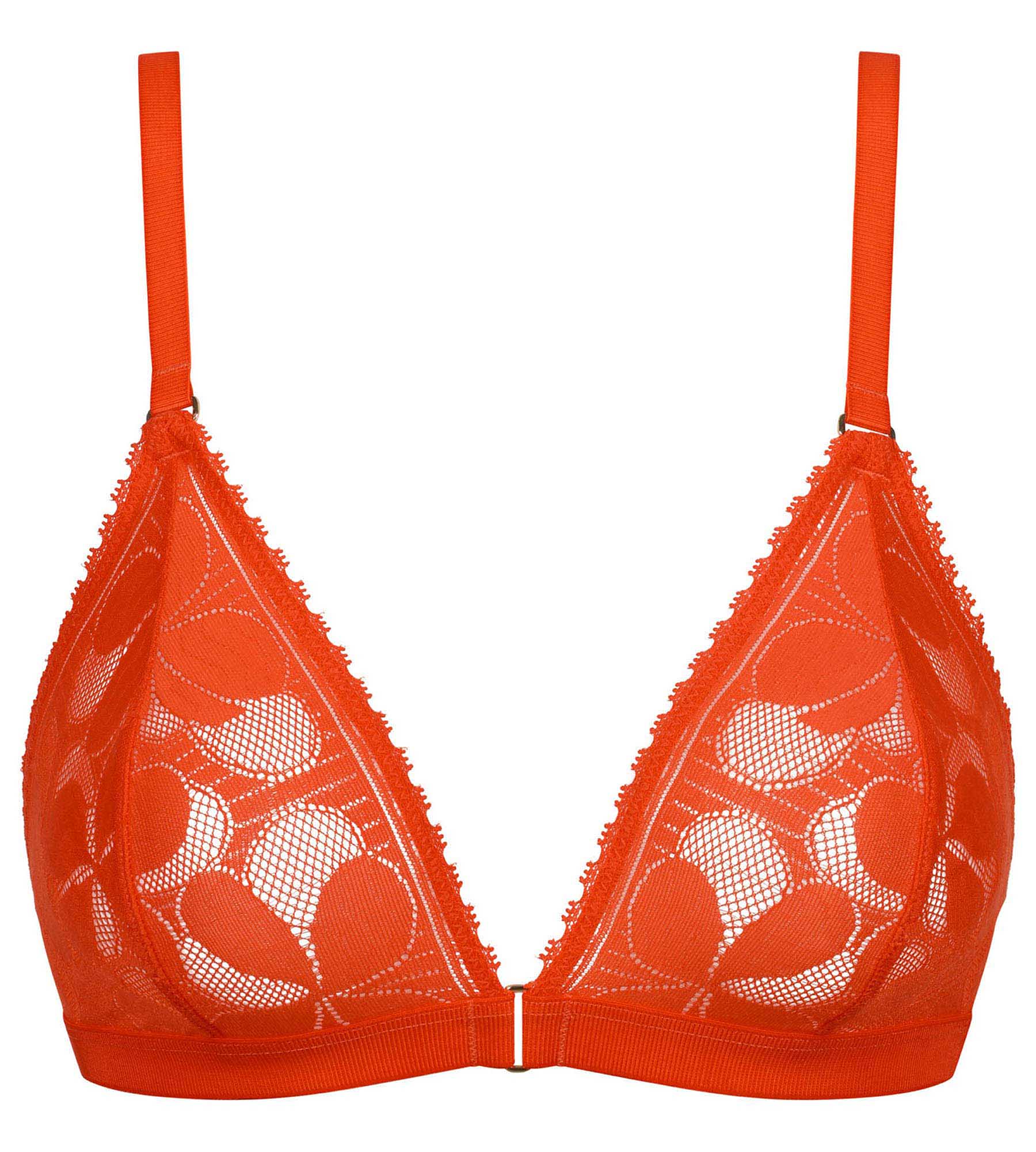 Show off a natural, luminous neckline with the Dim Art Flower underwire-free triangle bra in Orange lace.