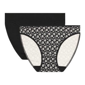 This Pack of 2 Dim women’s briefs combines practical design with soberly flirty details. Made from stretch cotton, these Dim women’s briefs offer flexibility and a custom fit. Whether you opt for sober black or daisy print, these cotton briefs are versatile and timeless.
