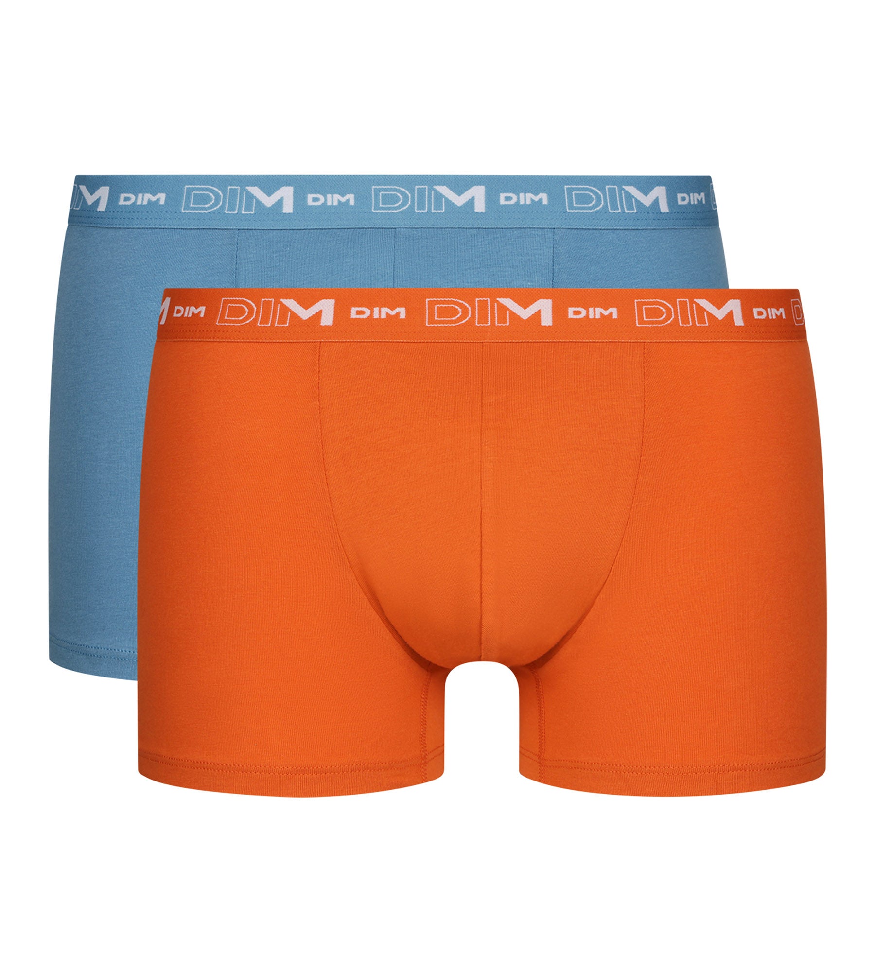Bring a dose of freshness to your everyday lingerie with the Pack of 2 Dim Coton Stretch men’s boxers, in Blue and Orange!