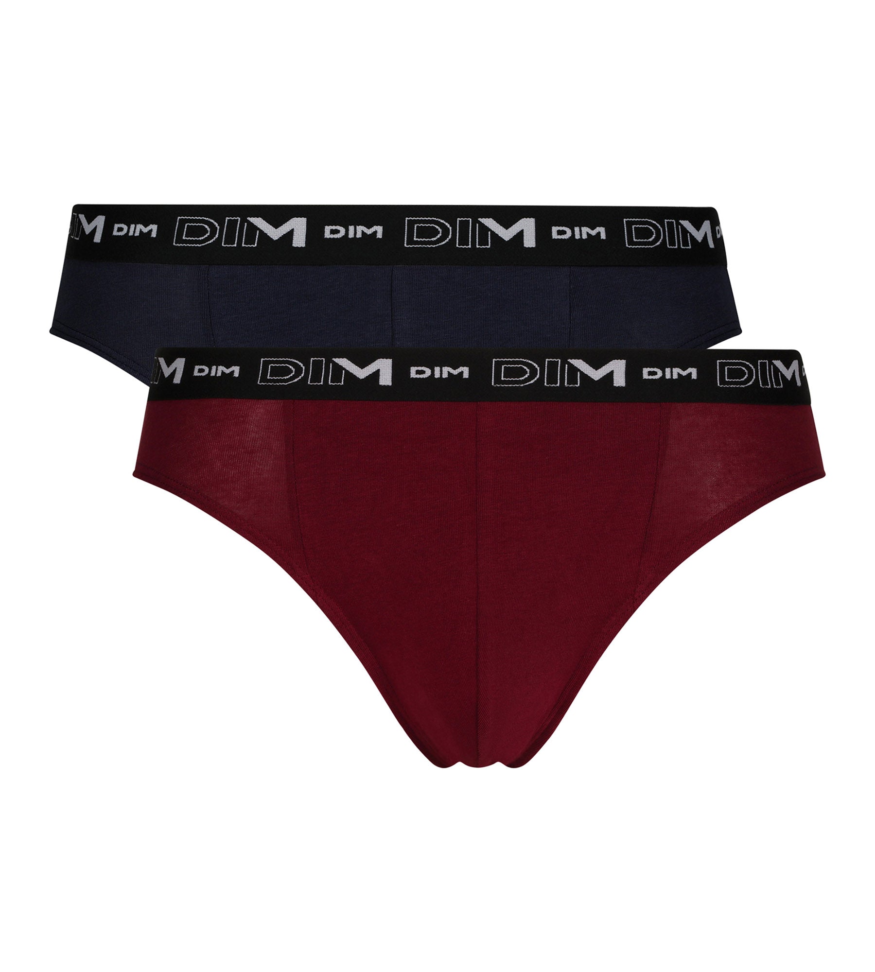 Bring some color to your basics with the Pack of 2 men’s briefs with stylish Dim Coton Stretch waistband in Chili Red and Denim Blue!