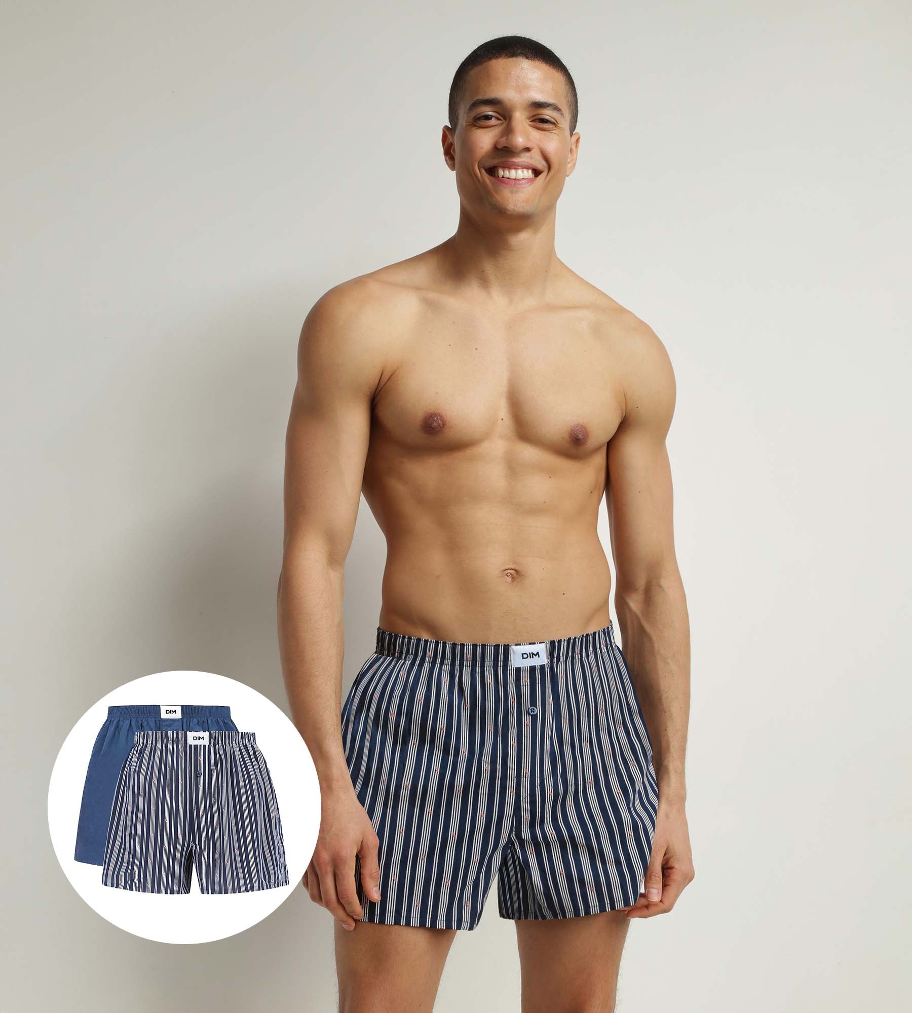 Get a trendy look with this pack of 2 pairs of boxer shorts men’s striped Indigo organic cotton Dim Good!