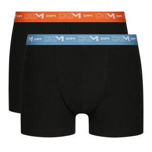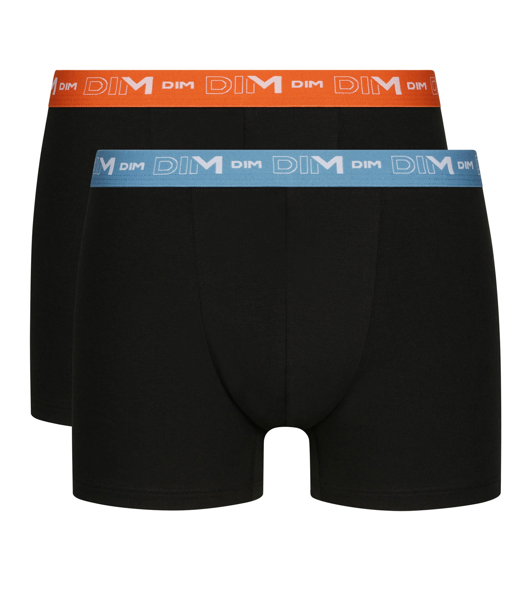 Pack of 2 Men’s Black Boxers with Blue and Orange Dim Cotton Stretch Waistband