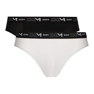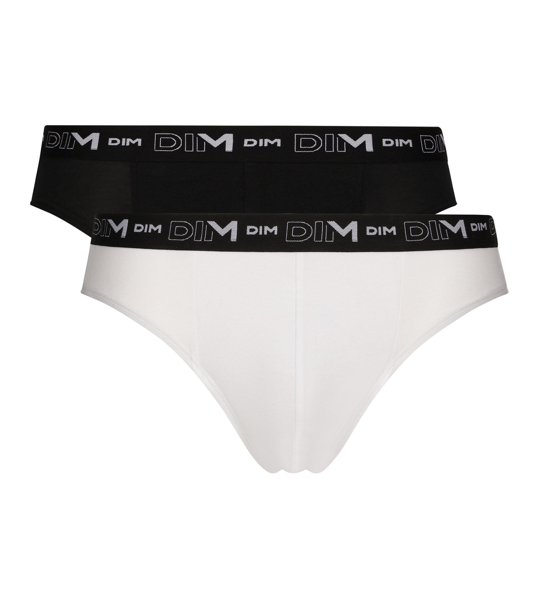 For long-lasting comfort and timeless style, choose the Dim Coton Stretch men’s briefs 2-pack, in Black and White with graphic waistband.