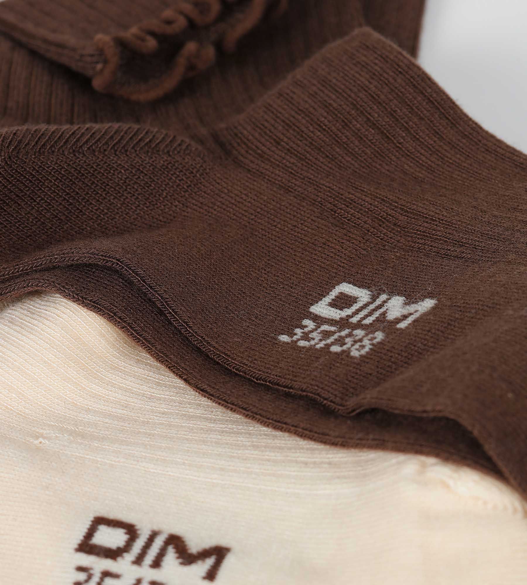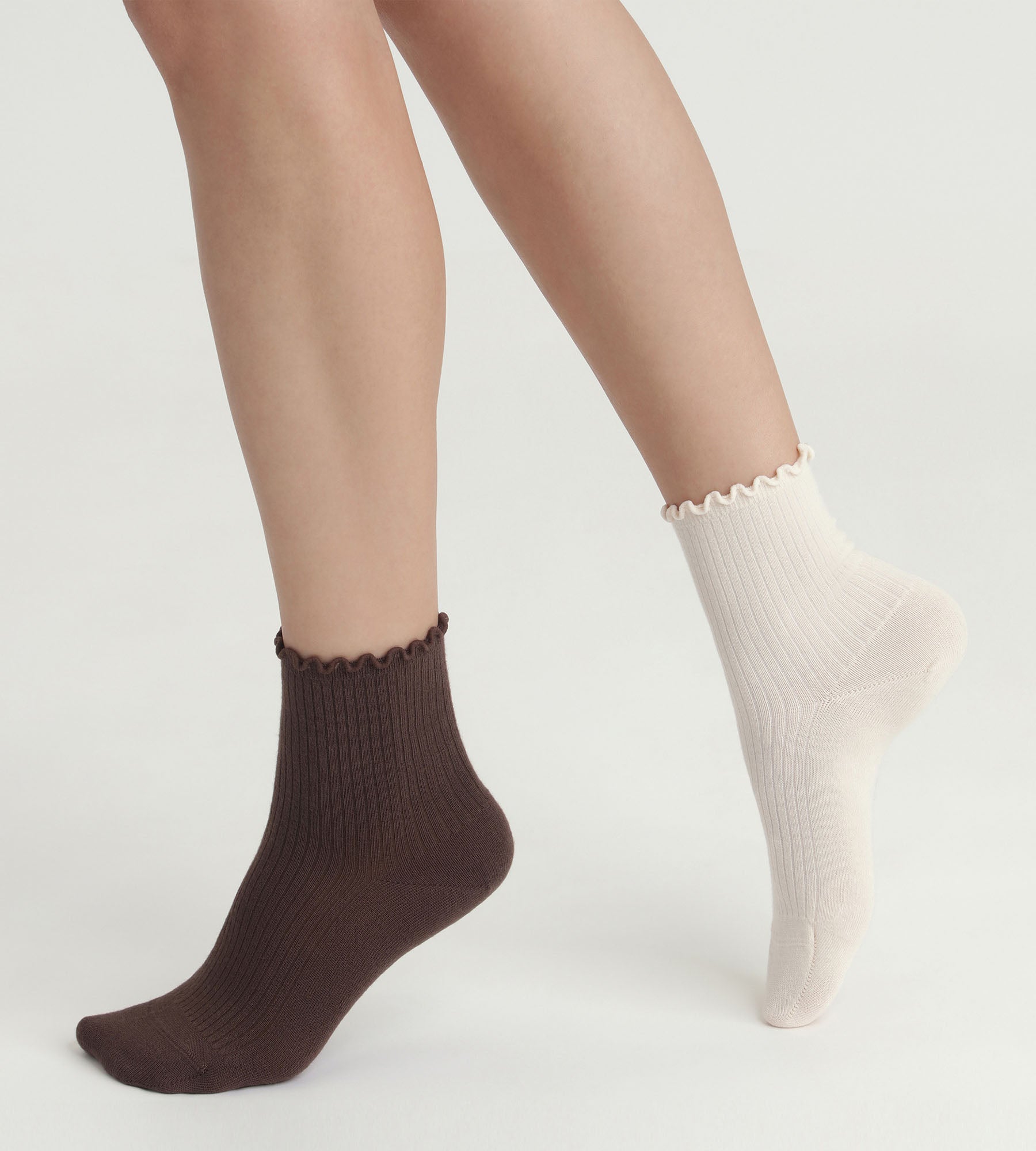 Pack of 2 pairs of beige women’s socks with Modal flounce