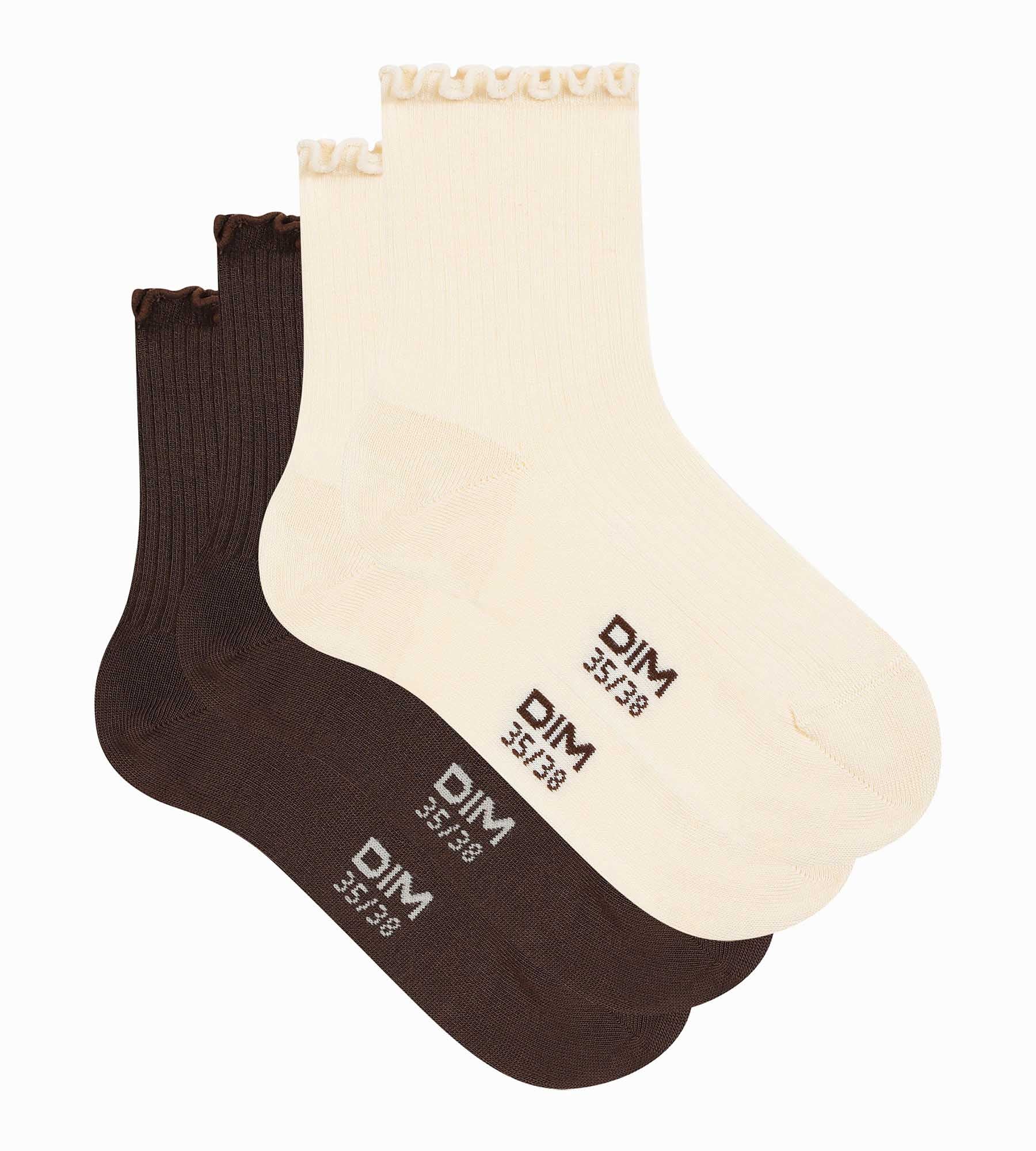 Crave for the coquettish, gourmand style of the 2-pair pack of Dim women’s socks in cream and chocolate modal!
