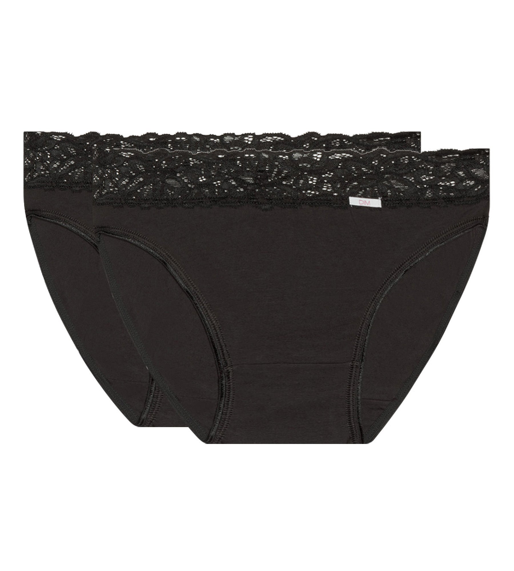 Twin pack of black midi knickers with an elegant lace waistband for easy-wear femininity