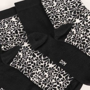 Feminise your approach with the pack of 2 pairs of Dim Good women’s socks in organic cotton with black and white flower motifs!