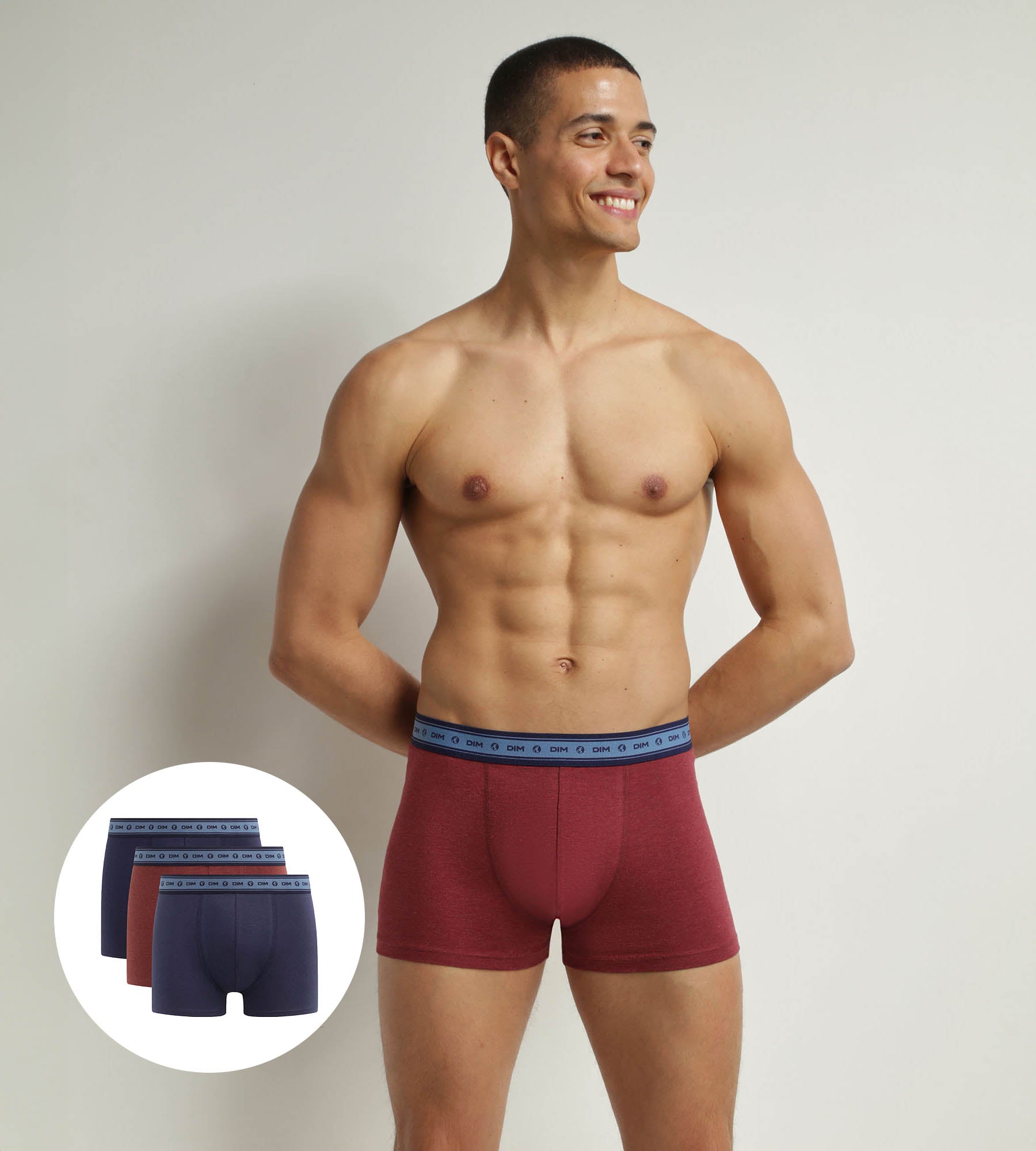 Featuring 2 Denim Blue men’s boxer shorts and a Wine Red boxer shorts, thepack boxers men’s Dim Good gives you a very masculine look! With its soft, stretchy fabric, yourboxers organic cotton for everyday comfort.Thanks to Dim’s signature black elastic waistband and front seams, your underwear will stay in place with style.