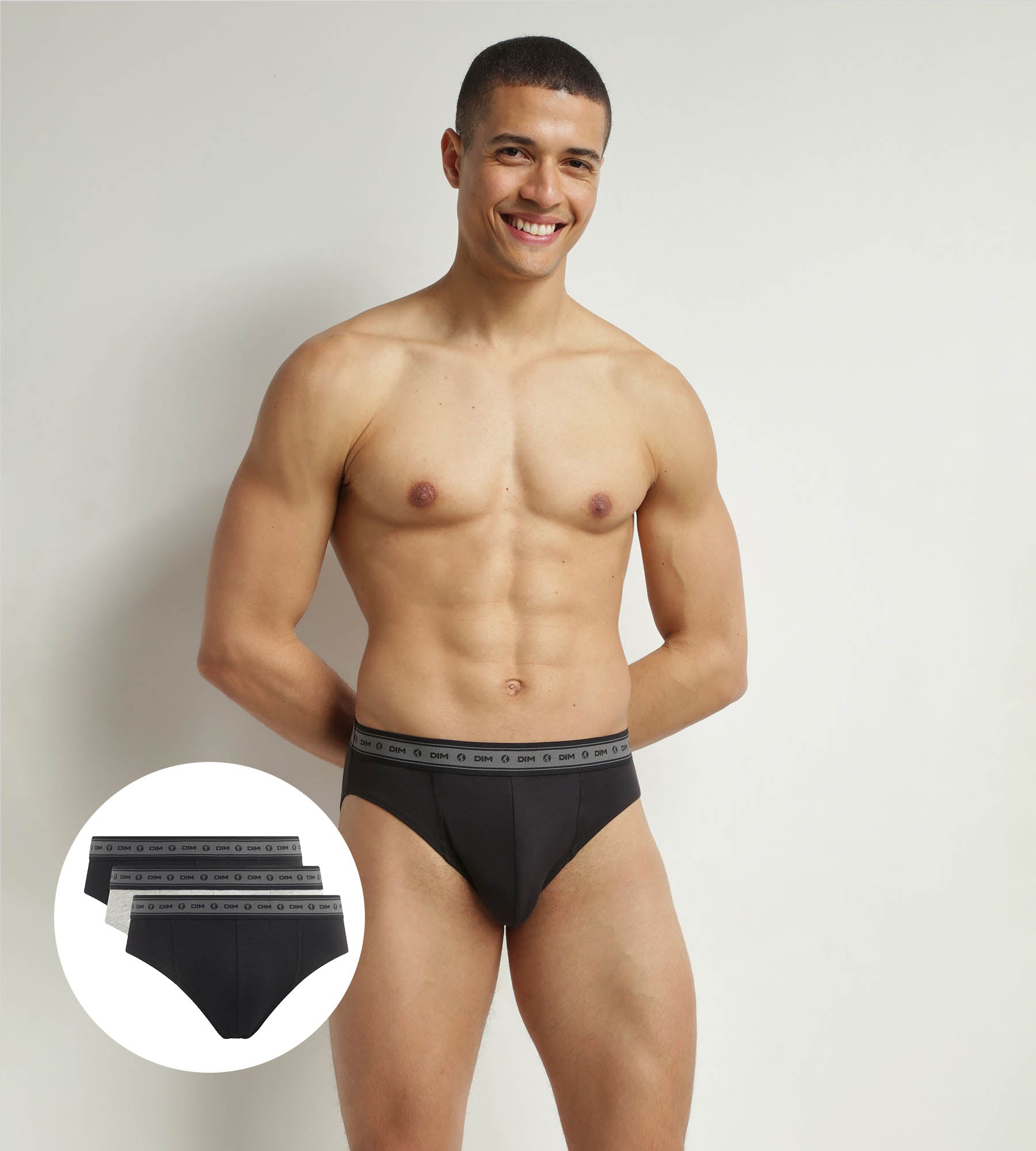 Look your best with the pack of 3 briefsBlack and Grey organic cotton Dim Good